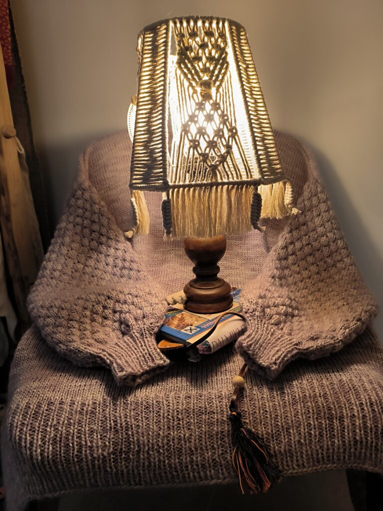 Väljapanek Dagmar Rosenbergi käsitööna tehtud esemetest. Käsikudumismasinaga kootud kleidid, džemprid, kampsunid ja seelikud on just sellised rõivad, mida tahaks selga panna kõleda sügisilmaga. Loodusvärvides mahedad toonid, kaunistuseks heeldatud ja tikitud motiivid ning rahvarõivastelt tuttavad mustrid annavad tunde, et need rõivad ongi kootud just sinule. Hubast olemist loob makrameekuplitega lampide soe valgus – vanadele laua-ja põrandalampidele on Dagmari käed andnud uhke väljanägemise.